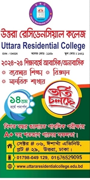 ২০২৪-২০২৫ শিক্ষাবর্ষে একাদশ শ্রেণীতে বিজ্ঞান, মানবিক ও ব্যবসায় শিক্ষা শাখায় ভর্তি চলছে। যোগাযোগ: ০১৭৯৮০৪৯১২৯,০১৬৭৬৫২৯০৯৫